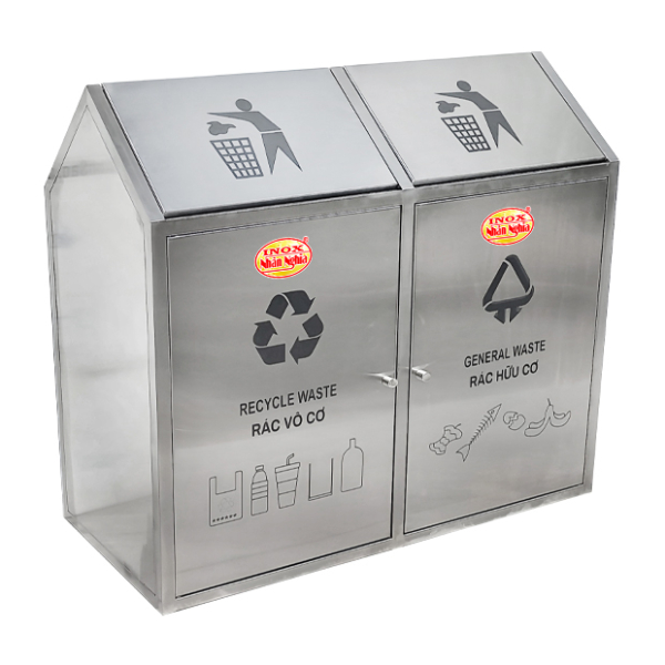 THÙNG PHÂN LOẠI RÁC INOX 2 HỘC INN 553