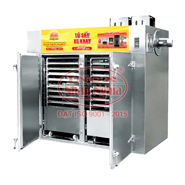 Tủ sấy khay sử dụng điện là một thiết bị hiện đại, sử dụng công nghệ hiện đại nhằm tối ưu hóa nhiệt lượng và đảm bảo an toàn vệ sinh thực phẩm. 1. Ưu điểm của tủ sấy khay sử dụng điện Được sản xuất theo quy trình hiện đại với nhiều công suất khác nhau nên thích hợp với từng mô hình khu bếp khác nhau. Thiết kế xe đẩy khay chuyên dụng nên có thể dễ dàng di chuyển mọi nơi, tiết kiệm thời gian cũng như đỡ tốn công sức hơn. Được thiết kế và sản xuất bằng chất liệu inox 304 cao cấp, không gỉ, chống oxy hóa điều này giúp tủ luôn bền đẹp theo thời gian. Với công suất hoạt động lớn nên thời gian sấy nhanh, tiết kiệm thời gian cũng như công sức của người dùng. 2. Hướng dẫn sử dụng tủ sấy khay sử dụng điện Để sử dụng tủ sấy khay đúng cách thì bạn cần thực hiện theo các bước sau: Đầu tiên là cắm nguồn cấp điện Xếp khay ăn inox vào từng đợt của tủ sấy Đóng chặt cửa lại và cài chốt cho an toàn Bật nút nguồn cấp điện Điều chỉnh, vặn nút nhiệt độ Điều chỉnh thời gian sấy 3. Lưu ý khi sử dụng tủ sấy khay sử dụng điện Lựa chọn nơi đặt tủ cao ráo, bằng phẳng, xa trẻ em. Không đặt tủ ở những nơi có vật dễ cháy nổ như: gas, hóa chất, rượu, màn che cửa,… Không nên sử dụng những chất tẩy rửa mạnh để lau chùi bề mặt tủ và để đảm bảo an toàn thì rút phích cắm điện ra trước khi lau tủ. Trong suốt quá trình tủ hoạt động không nên mở cửa tủ ra, sử dụng những thiết bị dẫn điện tốt, dòng điện ổn định liên tục.