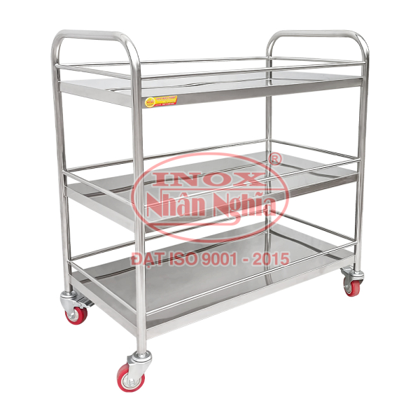 – Xe đẩy 3 tầng được thiết kế và sản xuất bằng inox ngoại nhập. – Gồm có: